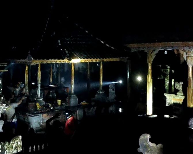 Kebakaran melanda Pura Siwa Dampati di Dusun Sidawa, Desa Tamanbali, Bangli, Selasa (28/2) sekitar pukul 19.00. Si jago merah melahap bangunan Bale Pesamuan Ageng. Kerugian diperkirakan mencapai Rp 100 juta.
