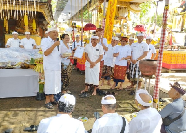 GIANYAR, BALI EXPRESS – SK SMP Negeri 4 Gianyar yang merupakan peralihan dari SMP Swadarma Sastra di Desa Serongga akhirnya diserahkan oleh Bupati Gianyar di Pura Desa, Desa Adat Serongga, Kecamatan Gianyar, Senin (6/3). Hal itu dilakukan sebagai bentuk komitmen Bupati Gianyar dalam meningkatkan kualitas pendidikan di Gianyar.