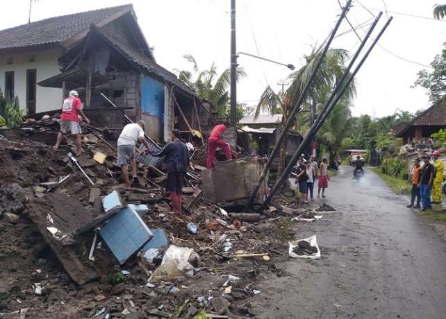KARANGASEM, BALI EXPRESS – Hujan mengguyur wilayah Kabupaten Karangasem sejak Minggu (30/4) malam hingga Senin (1/5). Situasi itu pun membuat bangunan dapur dan kamar mandi milik dua warga di Banjar Dinas Tegalinggah, Desa Tegalingah, Karangasem jebol. Syukurnya tidak terdapat korban jiwa dalam peristiwa tersebut.