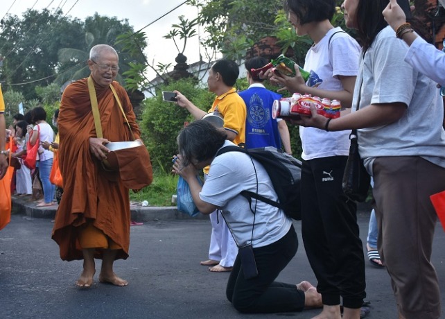 DENPASAR, BALI EXPRESS – Sebanyak ratusan umat Buddha di Kota Denpasar, Bali, mengikuti tradisi Pindapatta atau mempersembahkan makanan kepada Bhikkhu di sepanjang jalan Gunung Agung, menuju Vihara Buddha Sakyamuni Denpasar. Tradisi Pindapatta ini digelar dalam rangkaian kegiatan menjelang peringatan Hari Trisuci Waisak 2567 yang jatuh pada 4 juni 2023 mendatang.